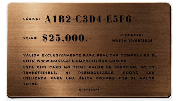 Gift Card Virtual BOKS CAFE
