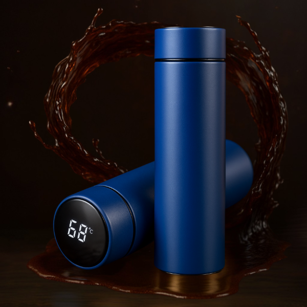 Termo de acero inoxidable de 500 ml con indicador digital de temperatura.